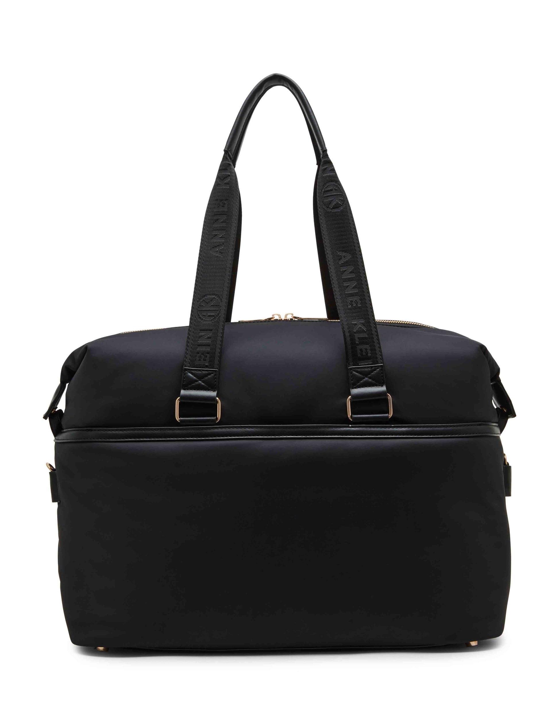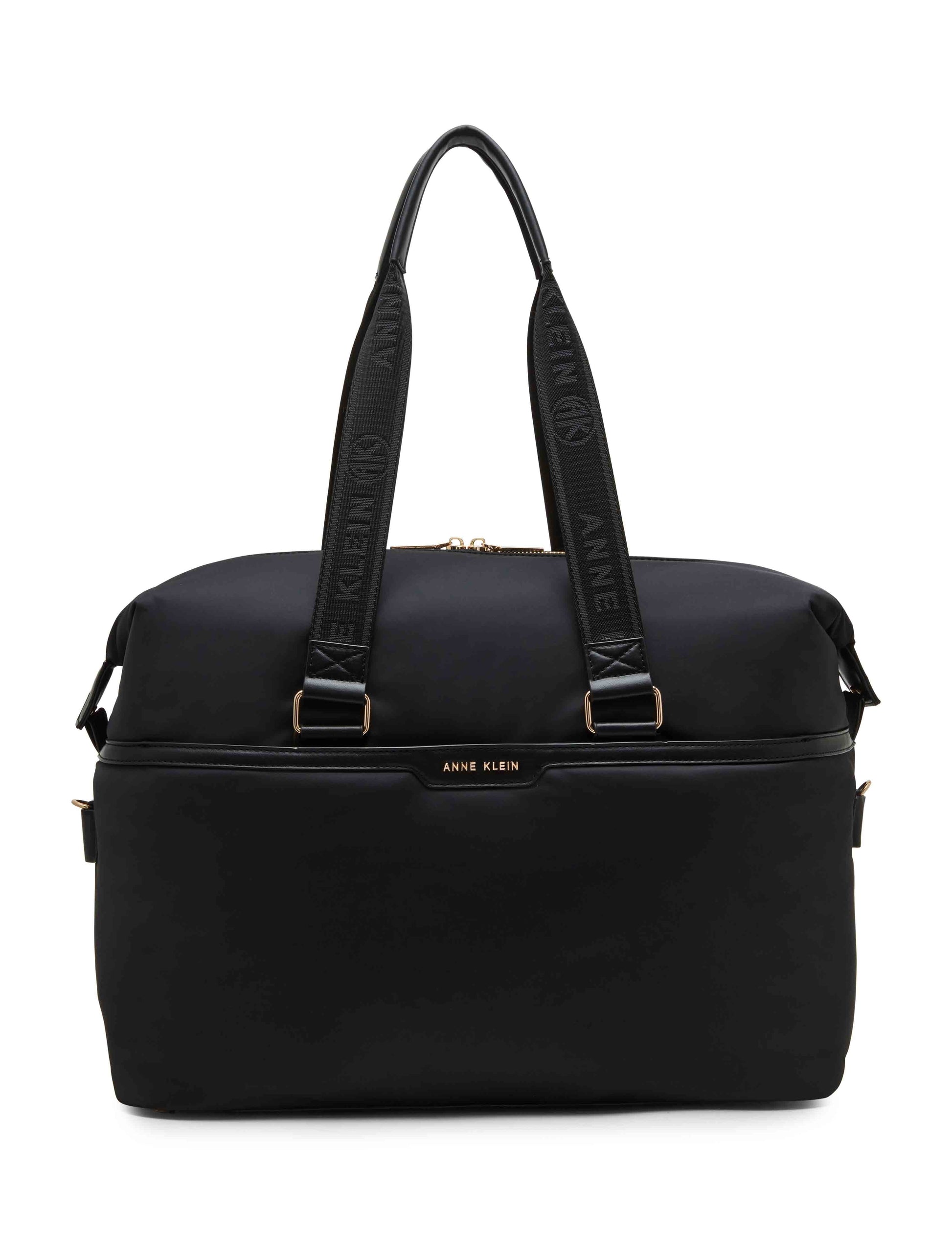 - The tote includes a convertible strap that can be adjusted to a max length of 24". Comes with a detachable pouch, decorative luggage tag and packable shoe bag.