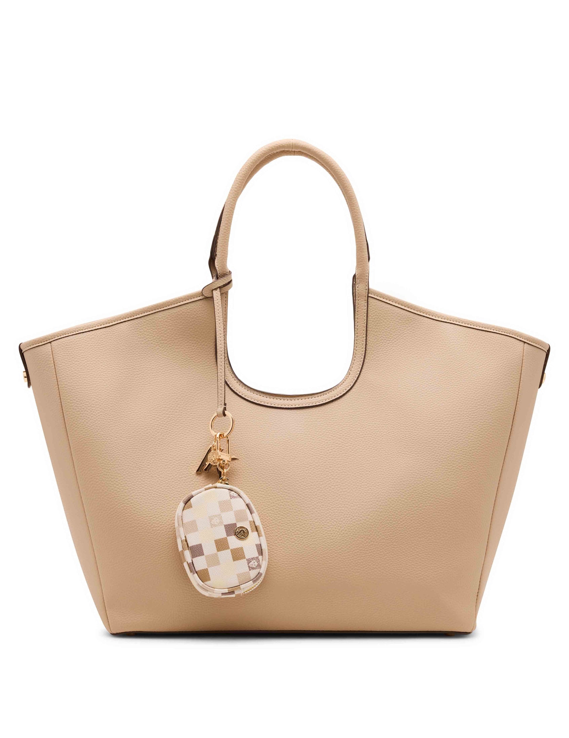 Upgrade your everyday style with our Large Structured Tote. Features a sleek silhouette, comfortable top handles and a chic logo charm. Designed for both fashion and function, this versatile tote offers ample space for all your essentials. Perfect for work or travel.